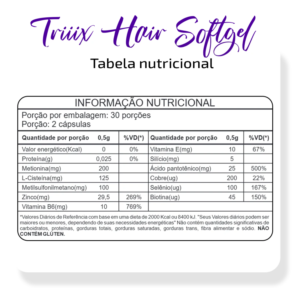 Triiix Hair: 2 cápsulas por dia junto com alguma refeição.